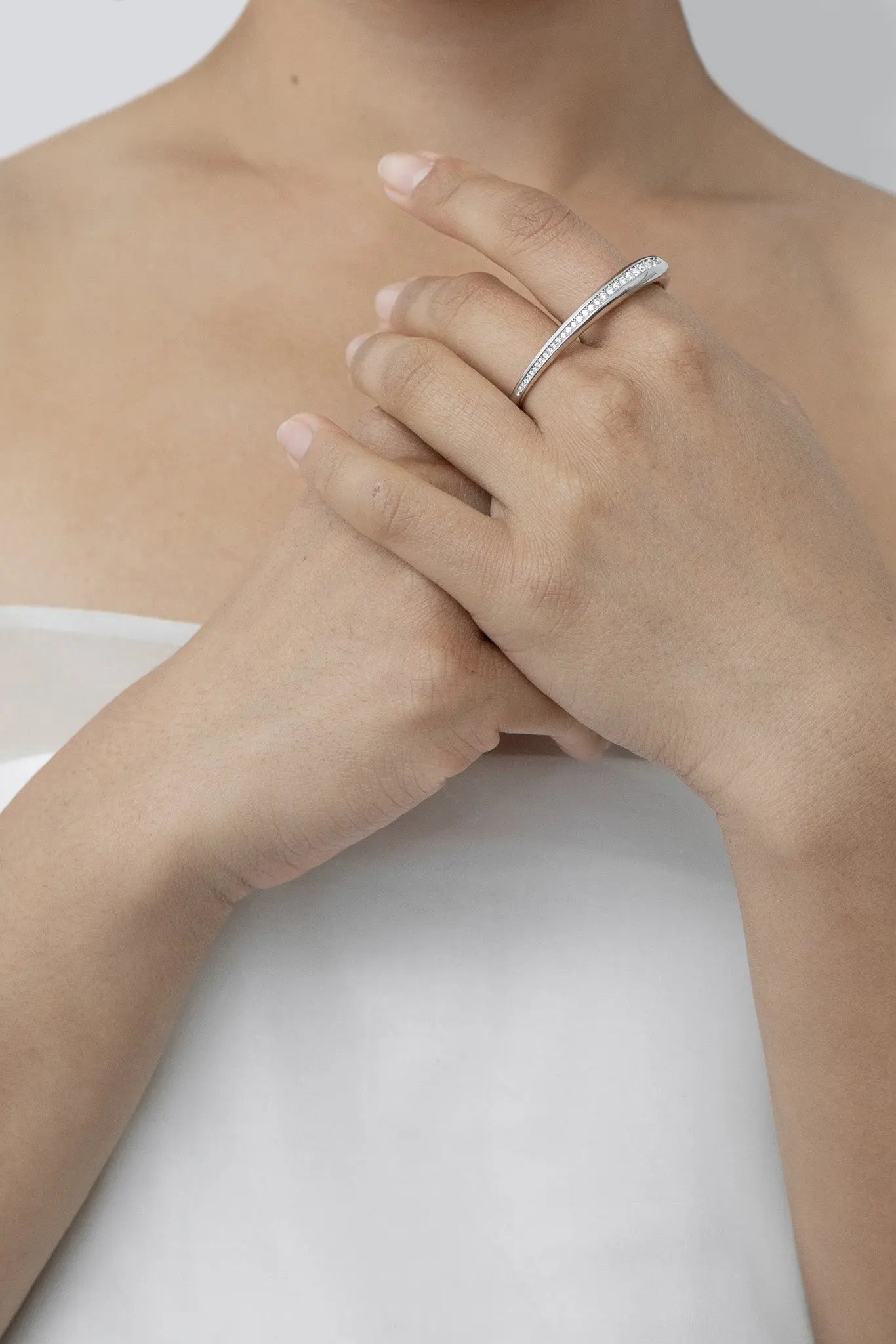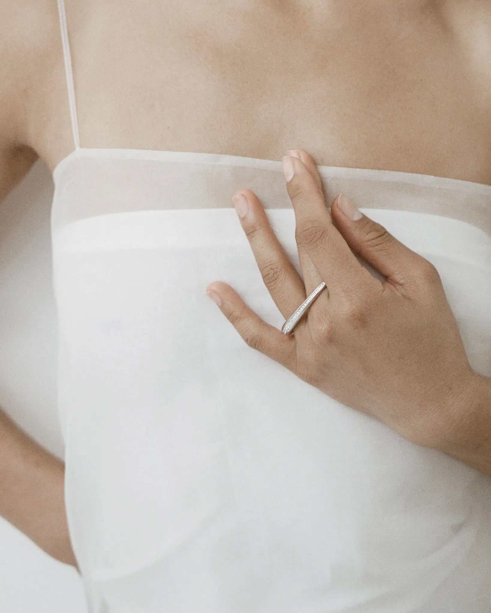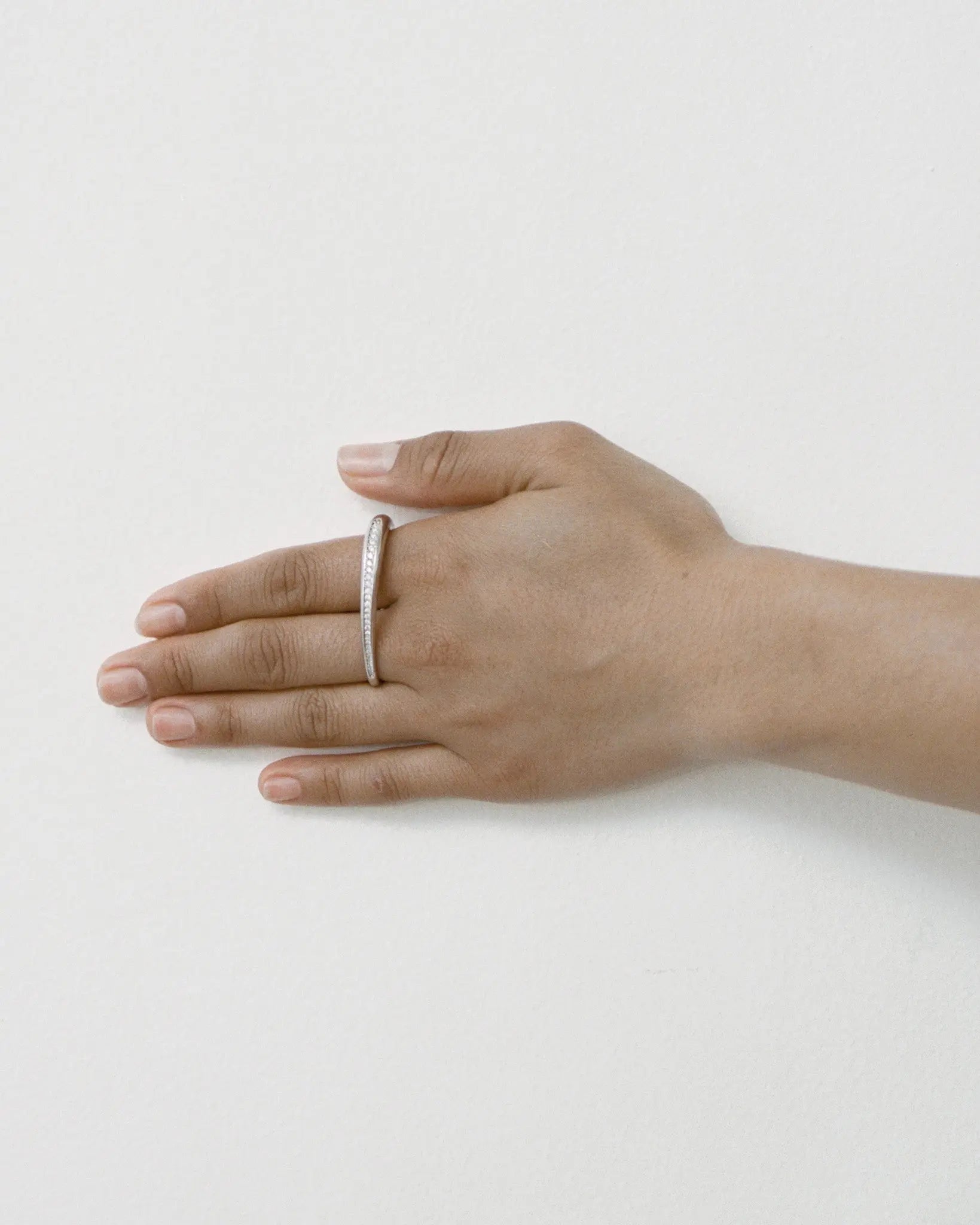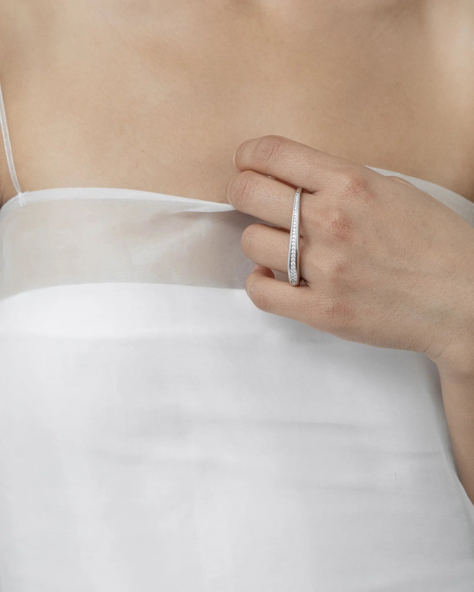光を受けて柔らかく流れるような、存在感のあるダブルフィンガーリング。