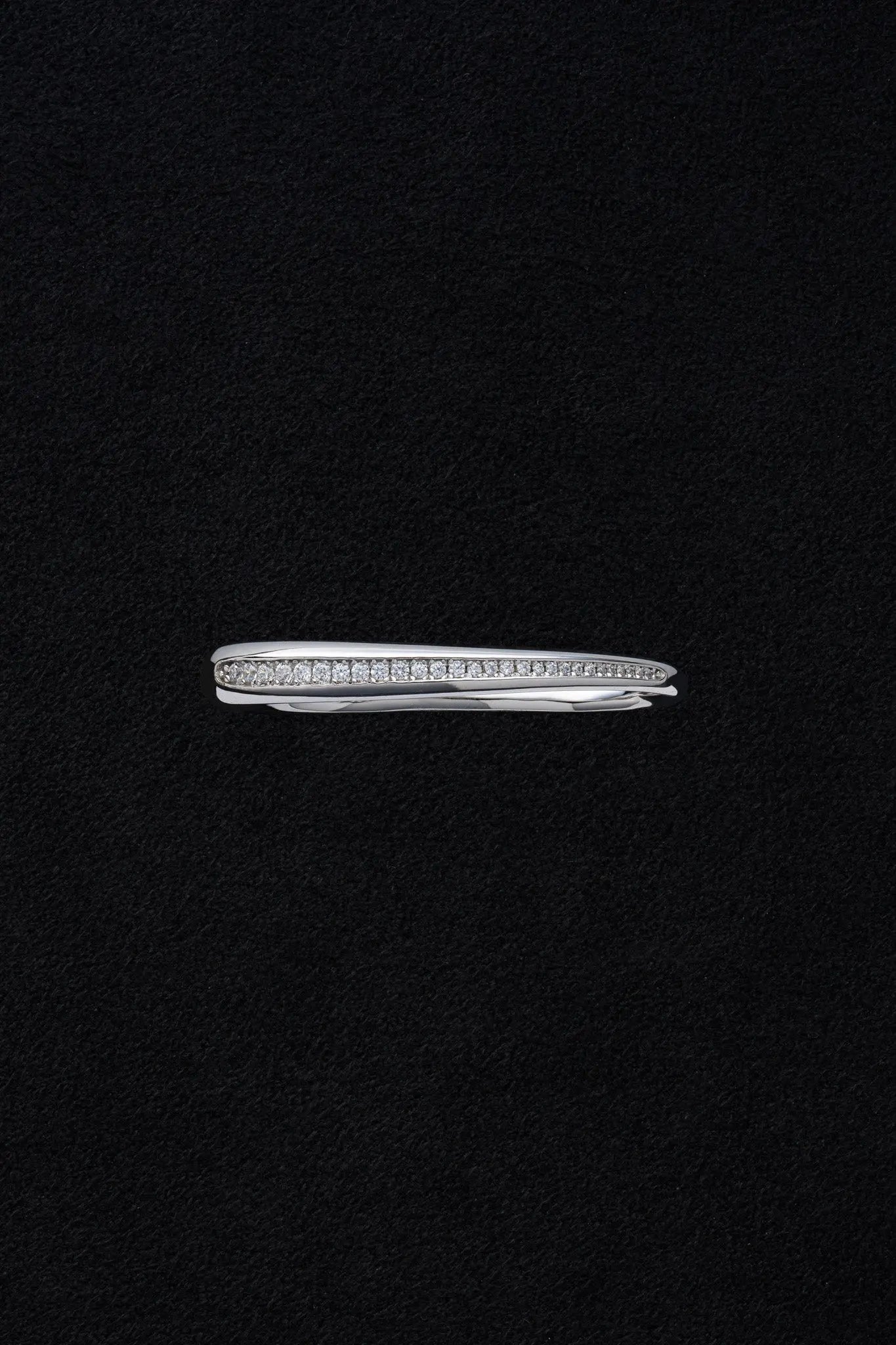 大小複数のストーンがリングに沿って緻密に配置され職人の技が光るデザイン。